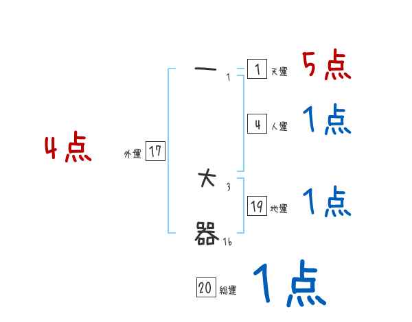 総運![]() | 一大器さんの総運は20画の1つ星!社交が苦手。人とは違った才能があり波乱万丈な人生かも。 あなたの人生を表す1番重要な運勢です。生涯を通じて影響する総合運となり、主に50歳以降の晩年期に影響を及ぼします。 |