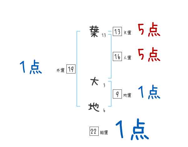 葉大地さんの画数の鑑定結果