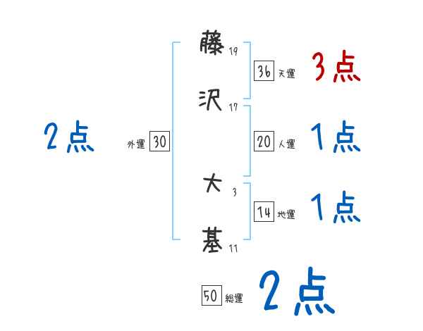 藤沢大基さんの画数の鑑定結果