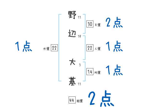 野辺大基さんの画数の鑑定結果