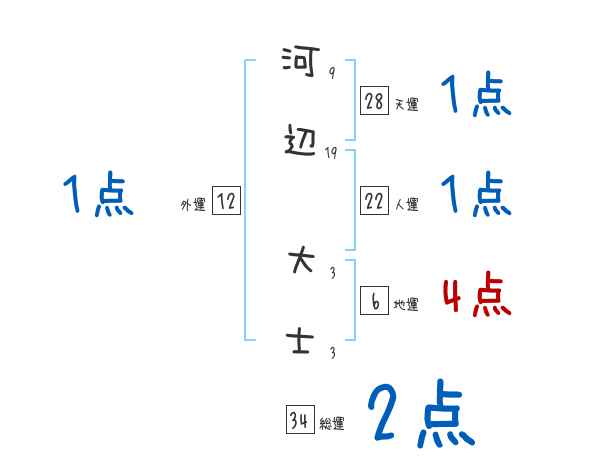 河辺大士さんの画数の鑑定結果