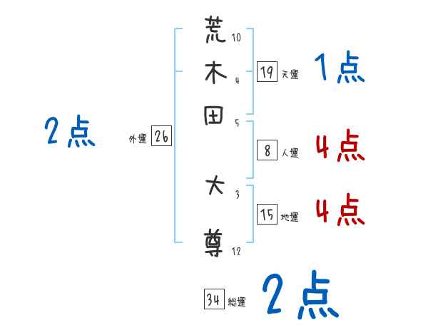 荒木田大尊さんの画数の鑑定結果
