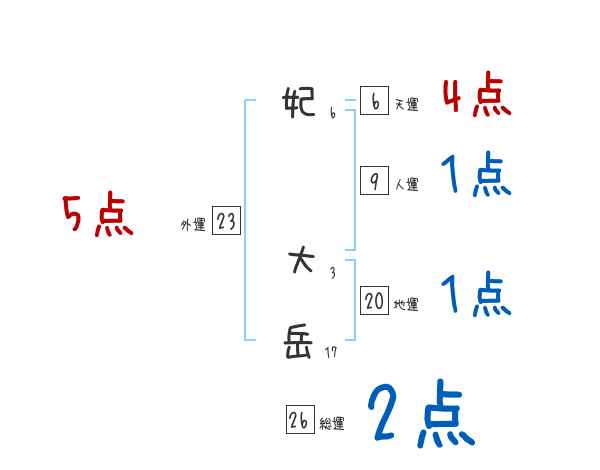 妃大岳さんの画数の鑑定結果