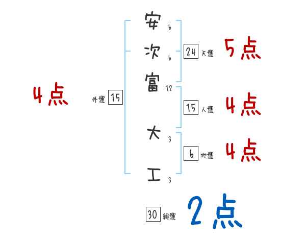 安次富大工さんの画数の鑑定結果