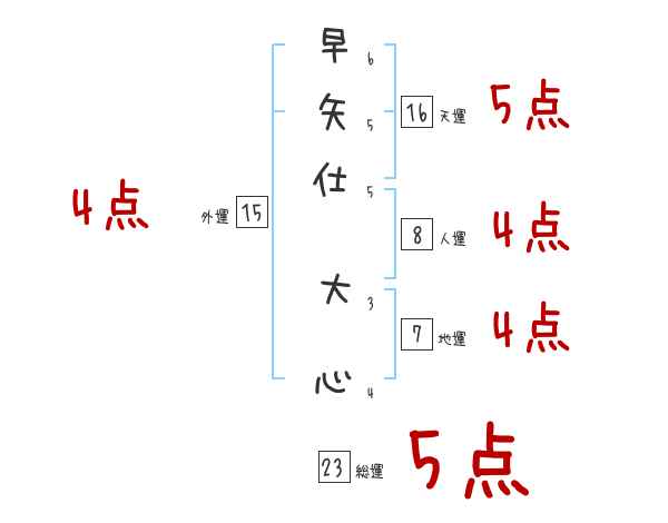 早矢仕大心さんの画数の鑑定結果