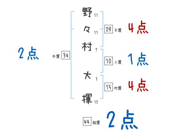 野々村大揮さんの画数の鑑定結果