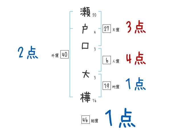 瀬戸口大樺さんの画数の鑑定結果