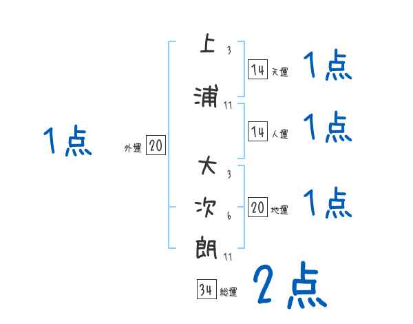 上浦大次朗さんの画数の鑑定結果