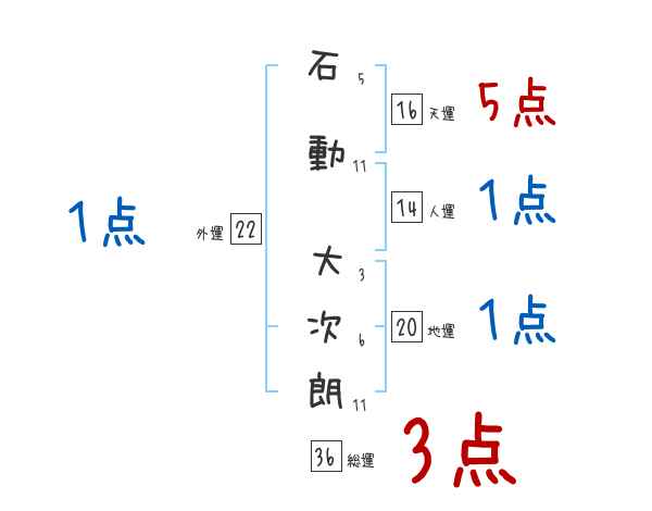 総運![]() | 石動大次朗さんの総運は36画の3つ星!先見性が豊かです。多少神経質で苦労することも。 あなたの人生を表す1番重要な運勢です。生涯を通じて影響する総合運となり、主に50歳以降の晩年期に影響を及ぼします。 |