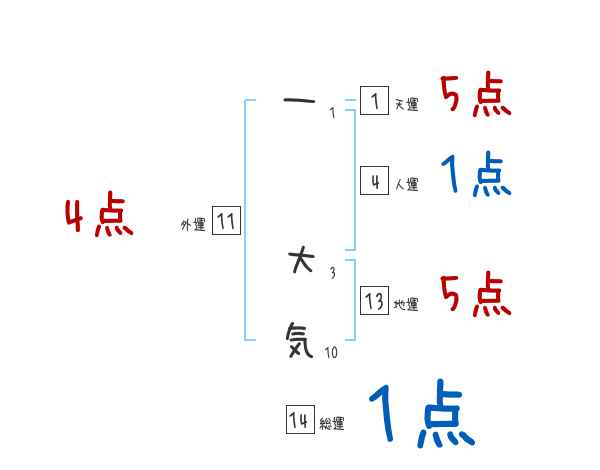 一大気さんの画数の鑑定結果