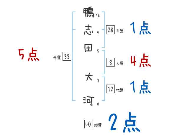 鴨志田大河さんの画数の鑑定結果
