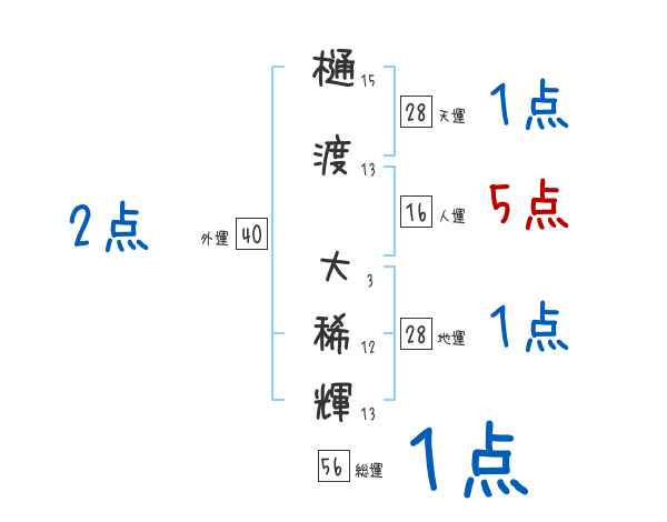 樋渡大稀輝さんの画数の鑑定結果