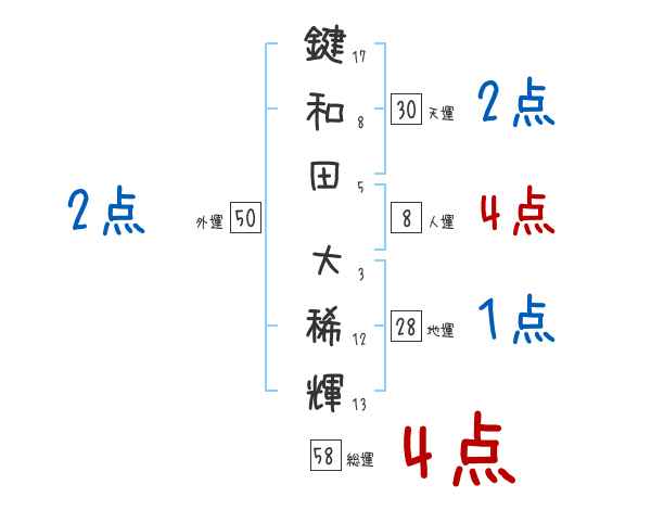 鍵和田大稀輝さんの画数の鑑定結果