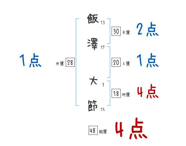 飯澤大節さんの画数の鑑定結果
