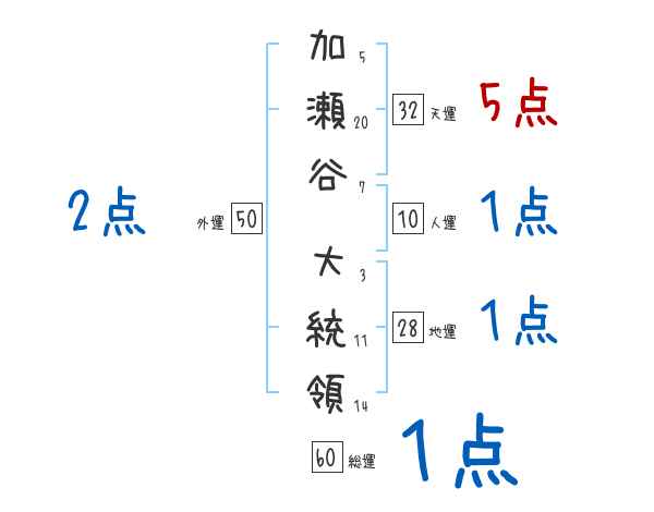 加瀬谷大統領さんの画数の鑑定結果