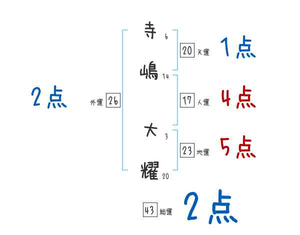 寺嶋大耀さんの画数の鑑定結果