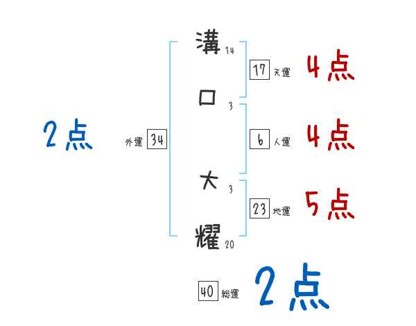 溝口大耀さんの画数の鑑定結果
