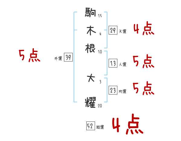 駒木根大耀さんの画数の鑑定結果