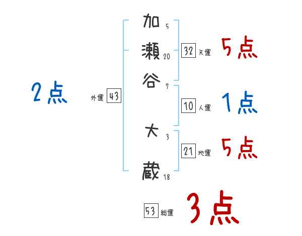 加瀬谷大蔵さんの画数の鑑定結果