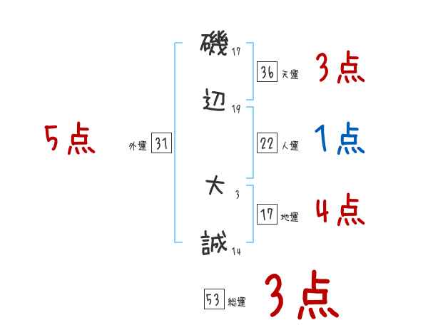 磯辺大誠さんの画数の鑑定結果