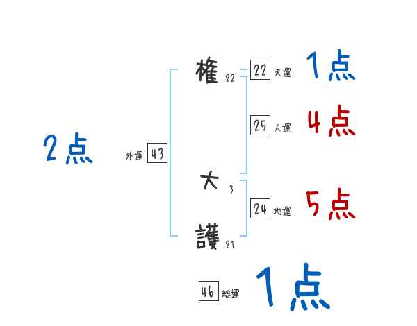 権大護さんの画数の鑑定結果