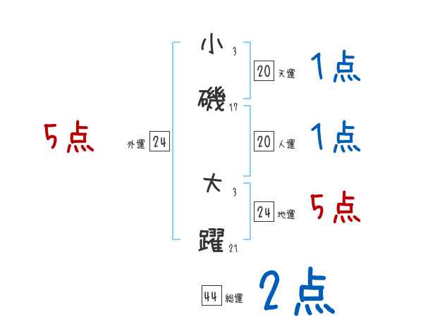 小磯大躍さんの画数の鑑定結果