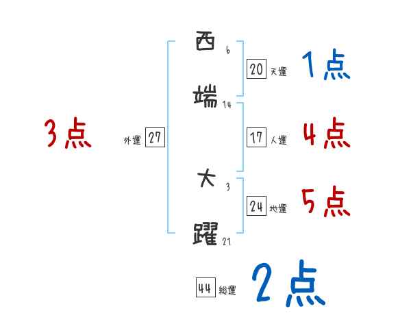 西端大躍さんの画数の鑑定結果