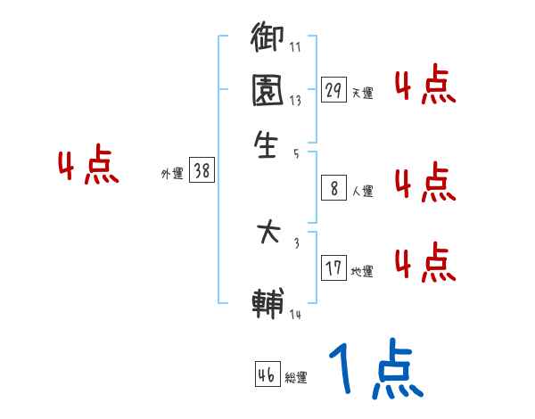 御園生大輔さんの画数の鑑定結果