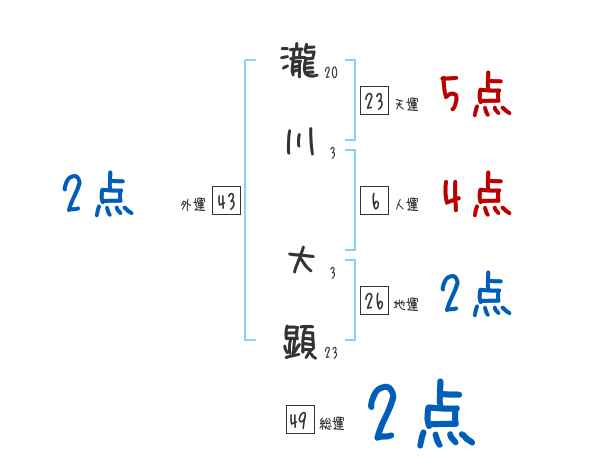 瀧川大顕さんの画数の鑑定結果