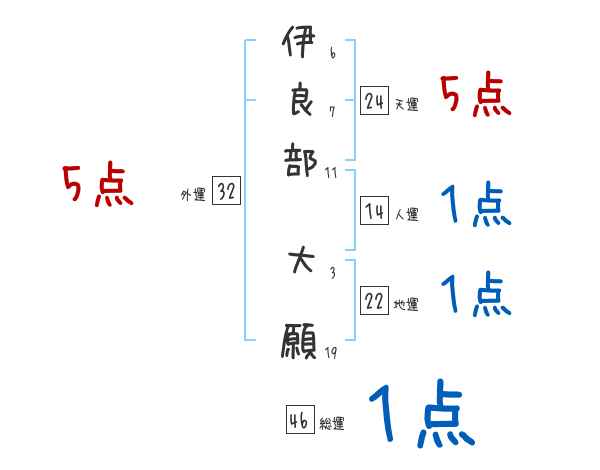 外運![]() | 伊良部大願さんの外運は32画の5つ星!柔軟性があり成功する。チャンスが多く金運が良い。 生活面を象徴する運勢です。外部から受ける影響力を表し、結婚運、家庭運や職場、環境への順応性を表します。 |