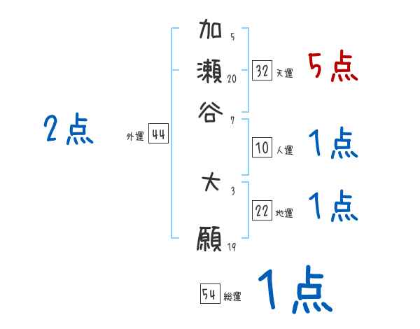 天運![]() | 加瀬谷大願さんの天運は32画の5つ星!柔軟性があり成功する。チャンスが多く金運が良い。 家系が持つ宿命的な運勢を表します。祖先から受け継いだ苗字ですので自分の力が及びません。家柄を象徴します。 |