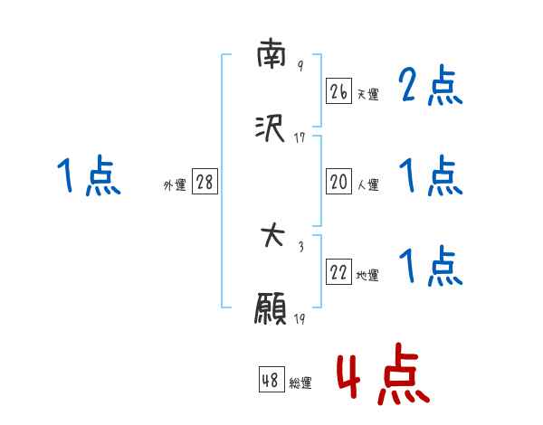 南沢大願さんの画数の鑑定結果