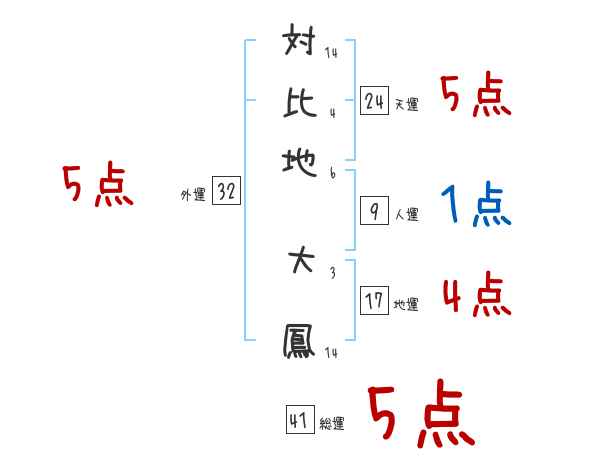 対比地大鳳さんの画数の鑑定結果