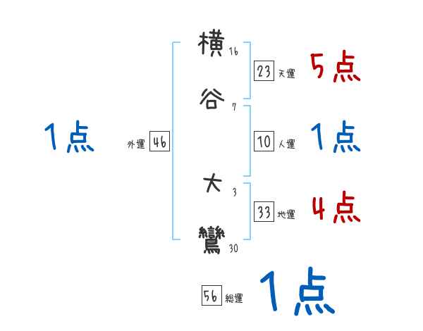 横谷大鸞さんの画数の鑑定結果