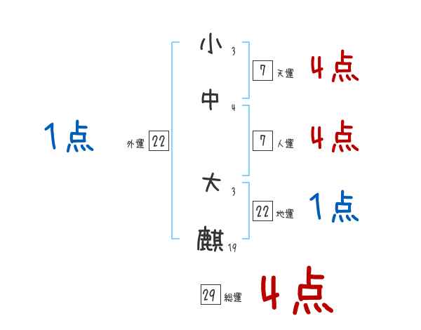 小中大麒さんの総運は29画の4つ星