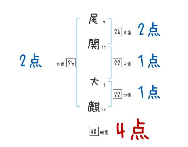 家系が持つ宿命的な運勢を表します。祖先から受け継いだ苗字ですので自分の力が及びません。家柄を象徴します。