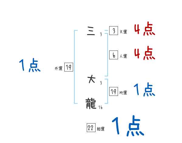 三大龍さんの画数の鑑定結果
