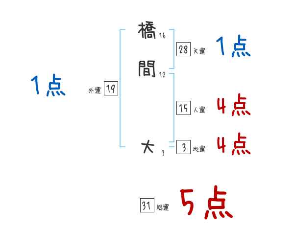 橋間大さんの画数の鑑定結果