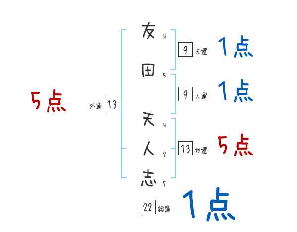 天運![]() | 友田天人志さんの天運は9画の1つ星!消極的で才能を発揮することが苦手なことも。周りの意見に耳を傾けましょう。 家系が持つ宿命的な運勢を表します。祖先から受け継いだ苗字ですので自分の力が及びません。家柄を象徴します。 |
