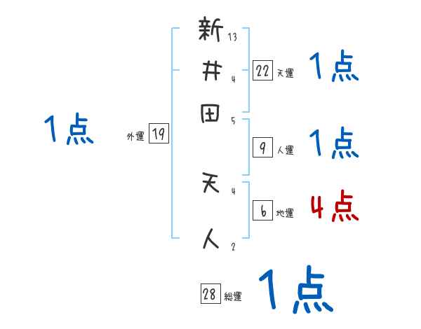 新井田天人さんの画数の鑑定結果