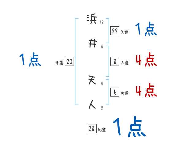 浜井天人さんの画数の鑑定結果
