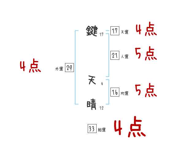 鍵天晴さんの画数の鑑定結果