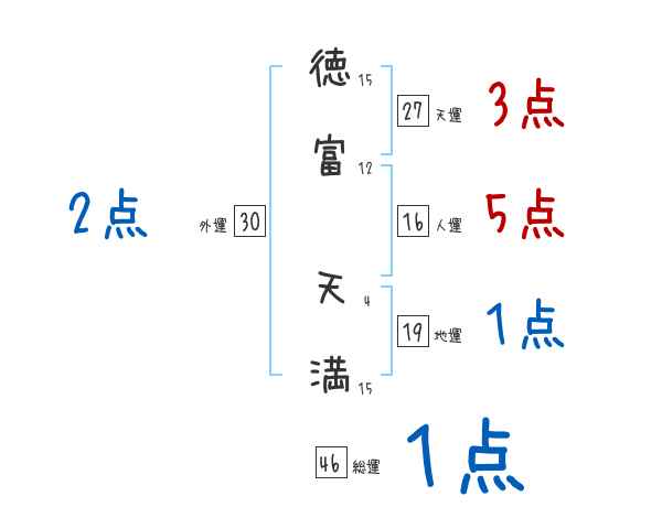 徳富天満さんの画数の鑑定結果
