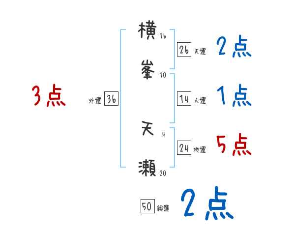 天運![]() | 横峯天瀬さんの天運は26画の2つ星!波瀾万丈かも。信頼できる人を大事にしましょう。 家系が持つ宿命的な運勢を表します。祖先から受け継いだ苗字ですので自分の力が及びません。家柄を象徴します。 |