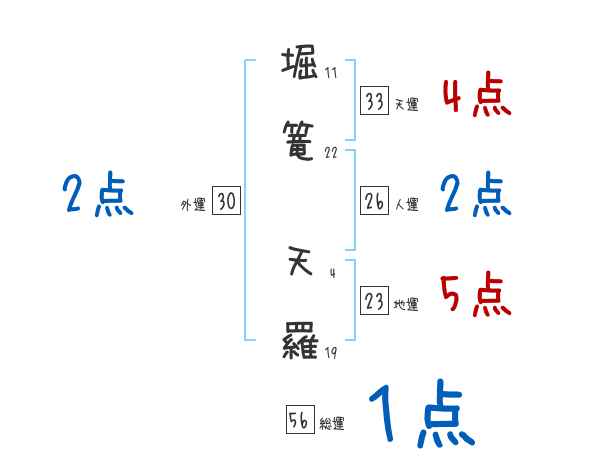堀篭天羅さんの画数の鑑定結果
