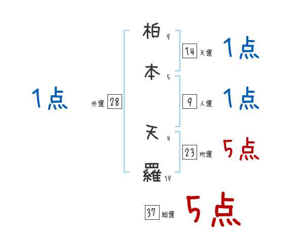柏本天羅さんの画数の鑑定結果
