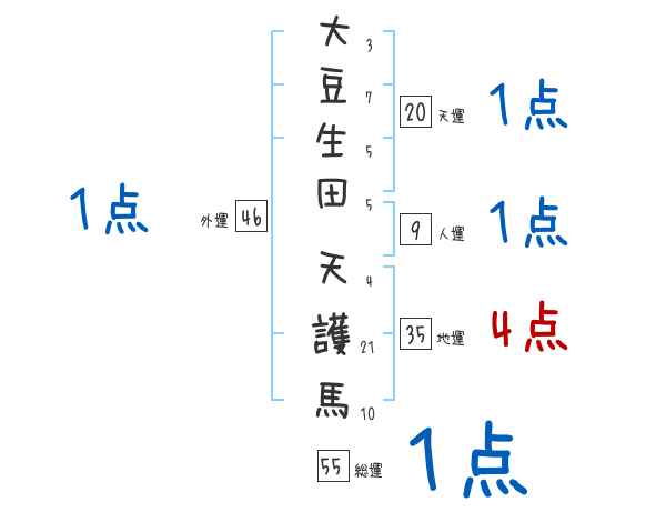 家系が持つ宿命的な運勢を表します。祖先から受け継いだ苗字ですので自分の力が及びません。家柄を象徴します。