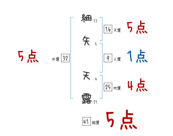 細矢天露さんの画数の鑑定結果