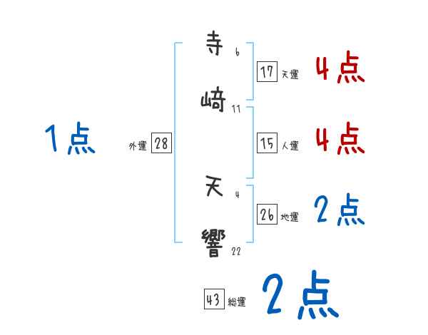 寺﨑天響さんの画数の鑑定結果