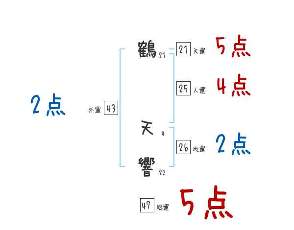 鶴天響さんの画数の鑑定結果